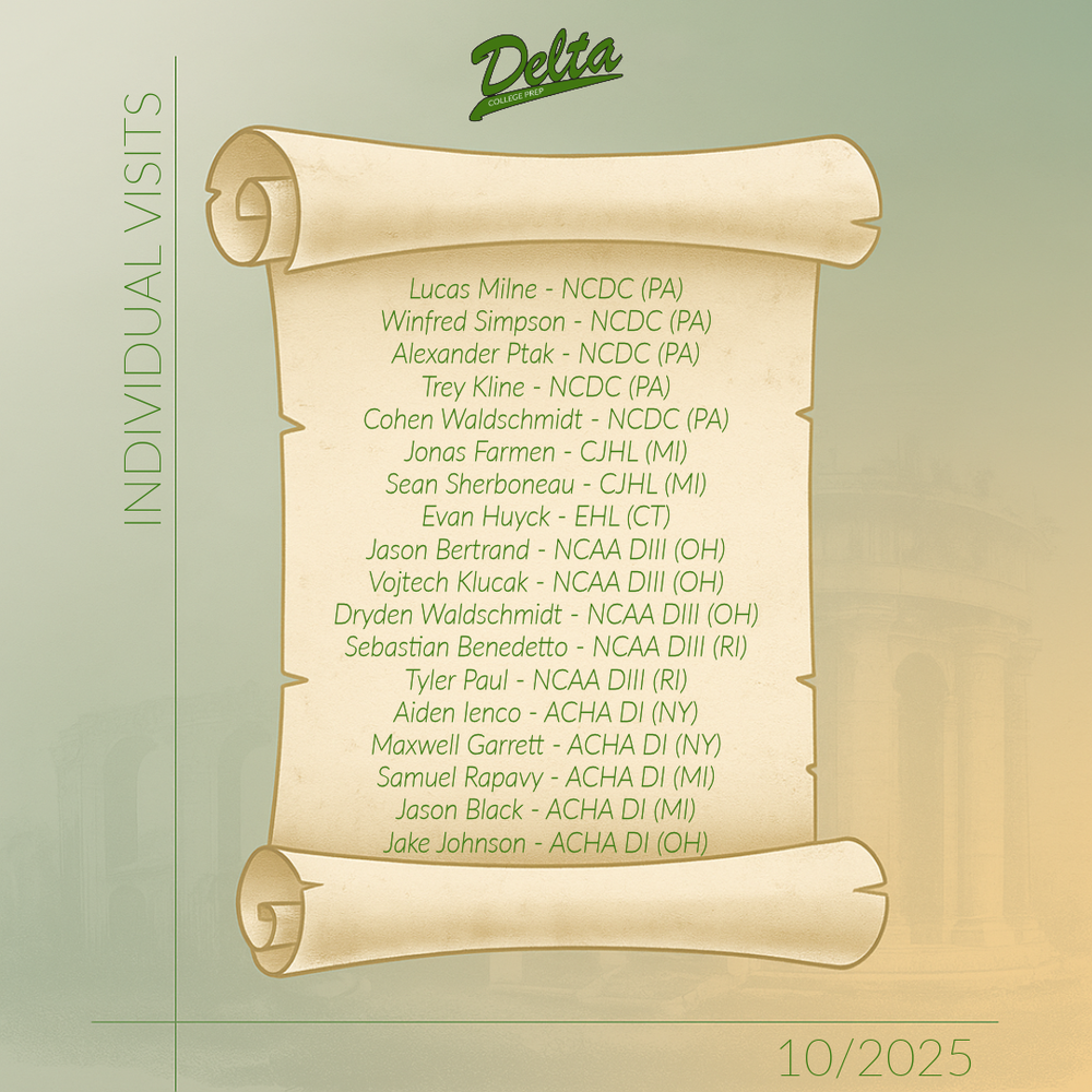 This structured approach to personalized recruiting exposure is one of the many ways Delta College Prep separates itself from competing programs. Few teams dedicate specific weekends solely for individual visits—especially those with access to legitimate college and junior hockey staff—made possible through the direct connections and credibility of the DCP coaching staff.