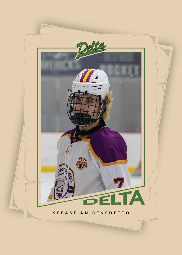 Delta College Prep Hockey is ecstatic to announce the re-signing of 2007-born forward Sebastian Benedetto for the 2025-26 season. A native of Long Island, New York, Benedetto is no stranger to the program after playing a key role in Delta’s National Championship run last season.