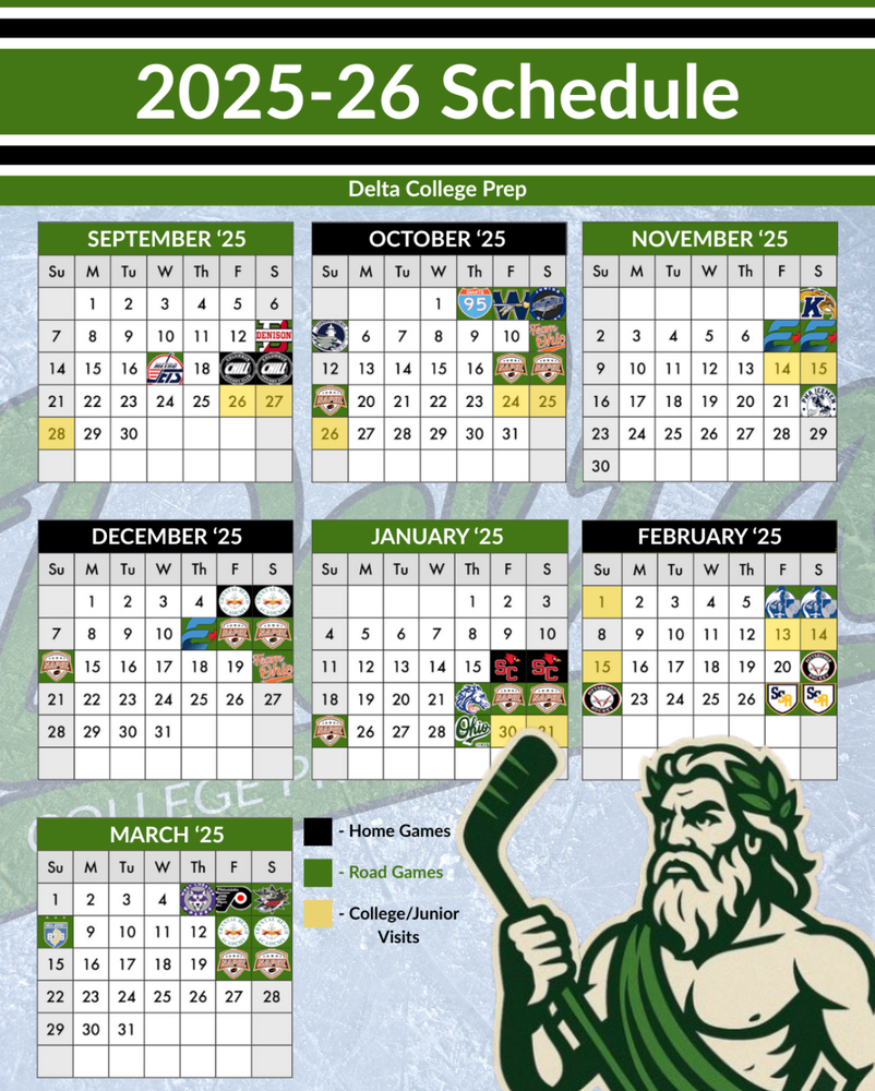 Highlights of the 2025-26 Delta College Prep hockey schedule include: